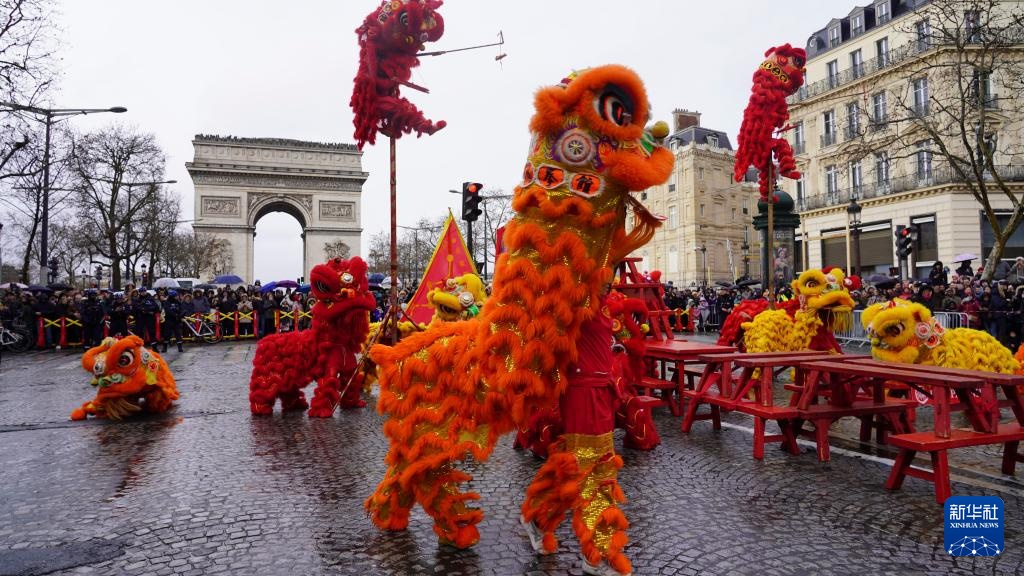 1日下午,由机器人引领的春节巡游表演方阵走上法国巴黎香榭丽舍大街,紧随其后的是舞龙舞狮、民族舞等传统表演,吸引了大街两侧的巴黎市民和游客驻足观看。在喜庆的锣鼓声中,法国这条地标性大道进入“春节时间”。