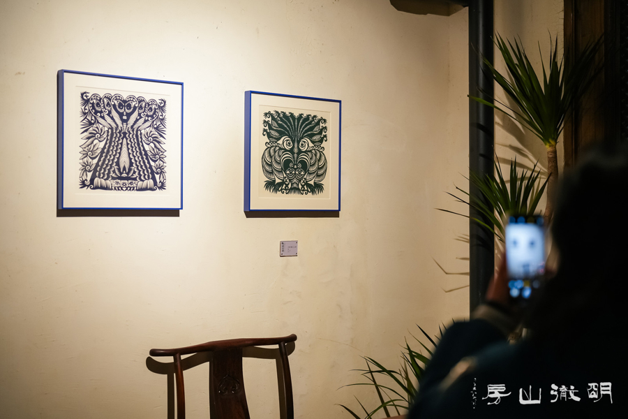 展览现场,浓郁饱满的红色、蓝色、填色剪纸,与江南园林式的古朴空间形成了有趣对话。陇东大地的长风、窑洞窗棂间的日光、山间舒卷的流云,似乎都被凝炼进了这些层叠的色块与交错线条中。何霞说,这是她对剪纸当代性的探索。“环境改变了,如果艺术不变,那就是死的艺术。”她并不抛弃传统,而是选择继承其精神——那种与天地共生、与生活同在的创造活力,然后,用属于这个时代的视觉语言,表达真实的自我以及能给人带来共鸣共情的东西。