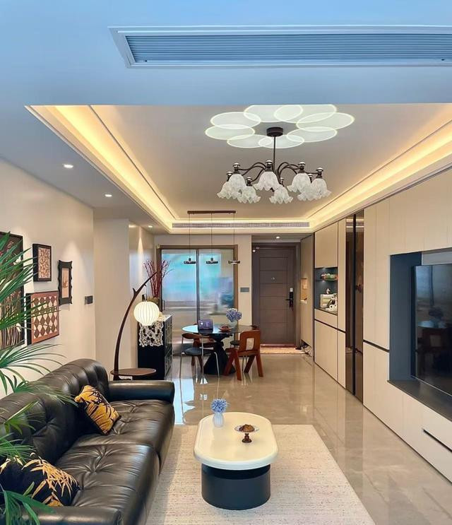 整屋没一块石膏线,却住进“高级感”。秘诀是“消隐”:强弱电箱藏进柜体,空调管走天花阴角,踢脚内嵌4cm黑色不锈钢,墙体像一张干净画板。邻居来参观,第一句话“你家好空”,第二句“东西呢?”——全在8米柜里。断舍离不是扔,是给每件杂物找“座位”。小郑的鞋柜底部悬空18cm,常穿鞋推进去,扫地机跟着钻;餐边柜里嵌轨道插座,榨汁机、火锅、投影仪想在哪吃在哪吃。住三个月,她只擦过柜门,没擦过台面,懒人狂喜。